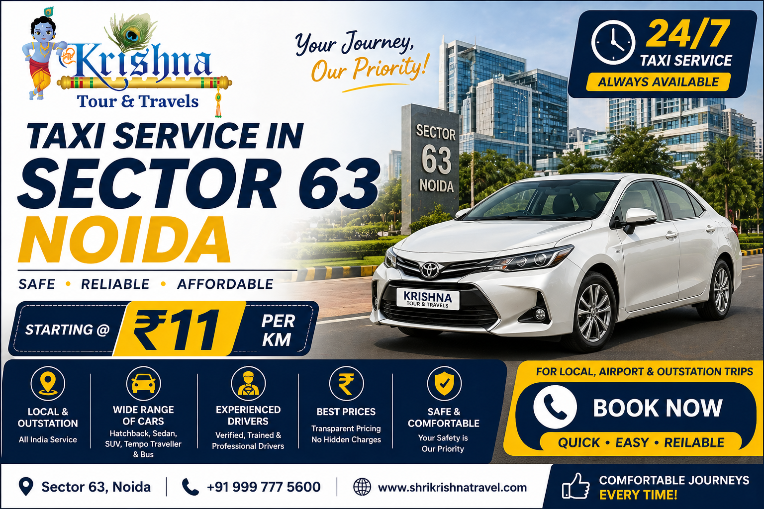 Taxi Service in Sector 63 Noida – 24/7 Reliable Taxi Booking @11/km
